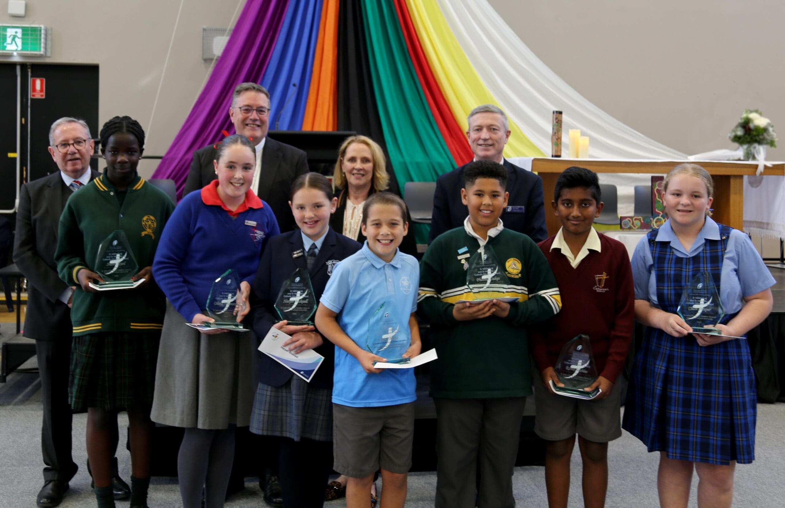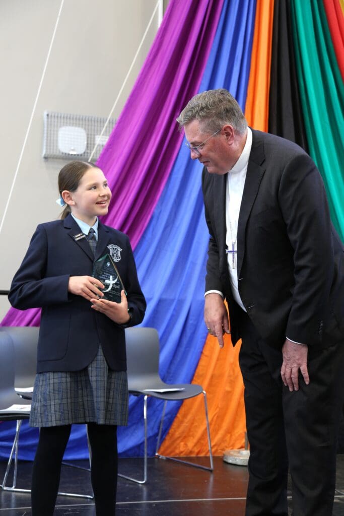 Seven Year 6 students selected from Catholic schools across the Diocese were recognised, each receiving a trophy and $200 to support their Catholic secondary education. They are: